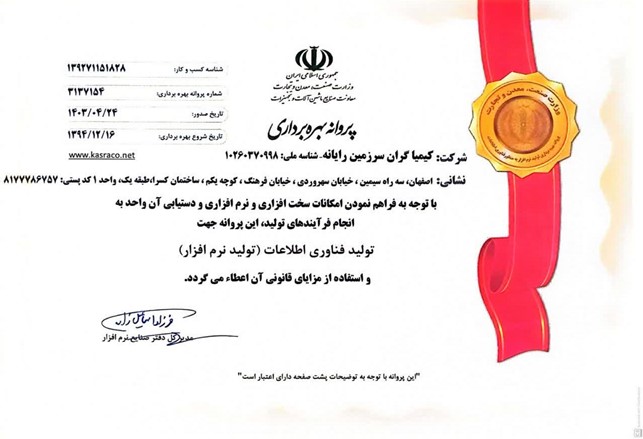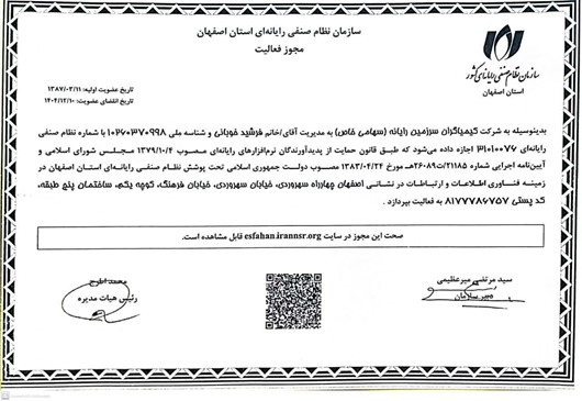 - پروانه بهره برداری وزارت صنعت و معدن و تجارت